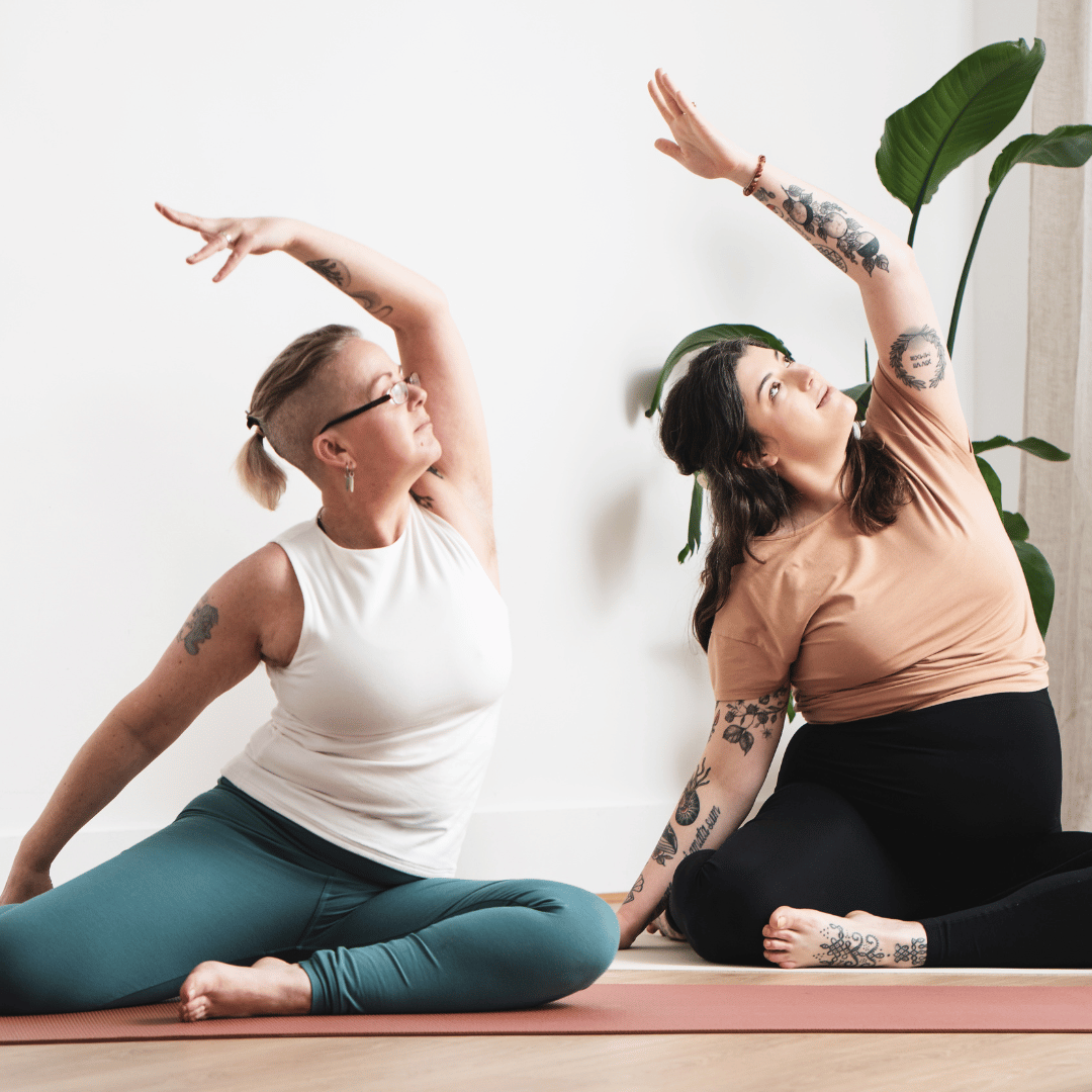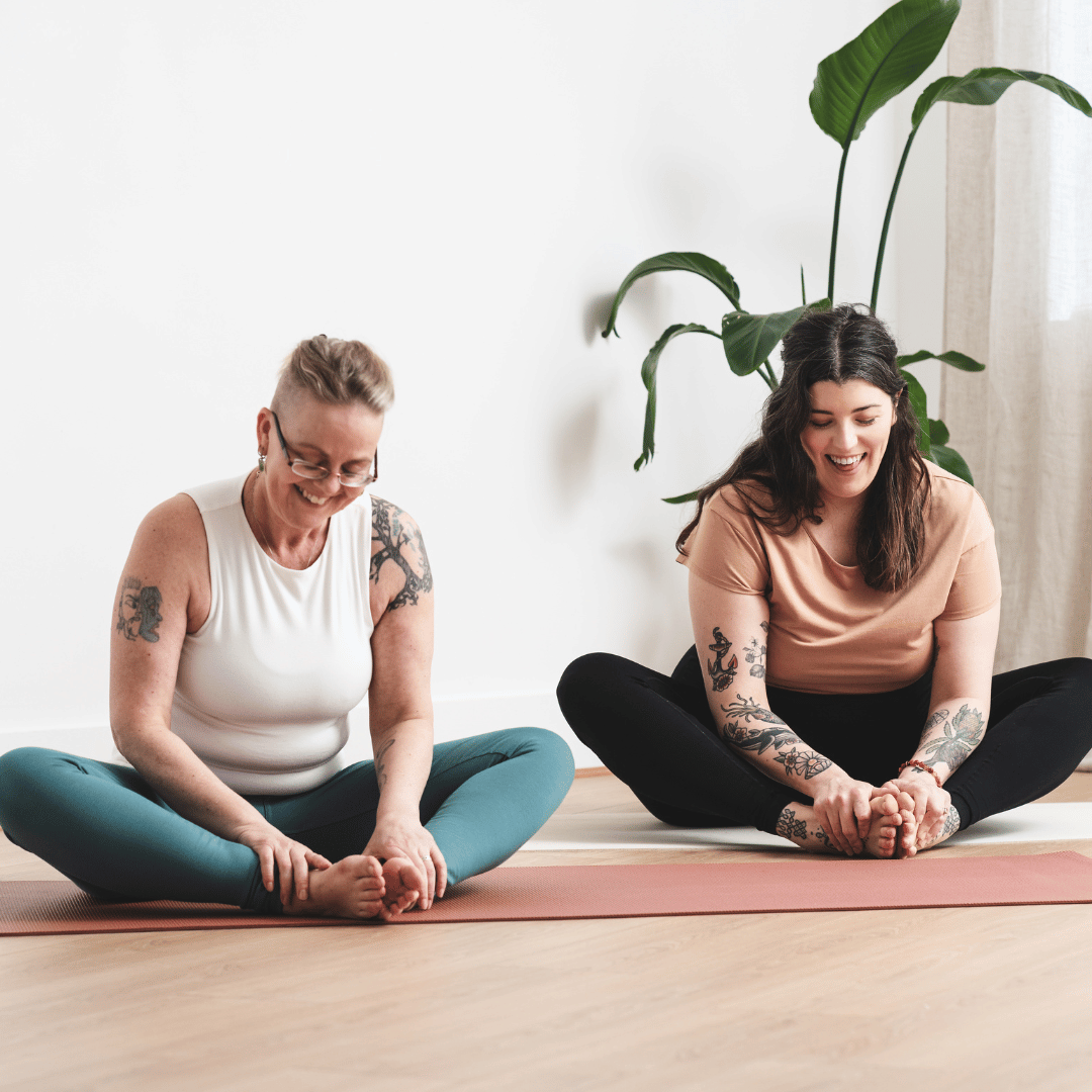 Enhance: It is highly likely that the sitting bones will not be level on the mat in this position – sitting on a small cushion or folded blanket can help them feel more even and grounded if that is comforting.