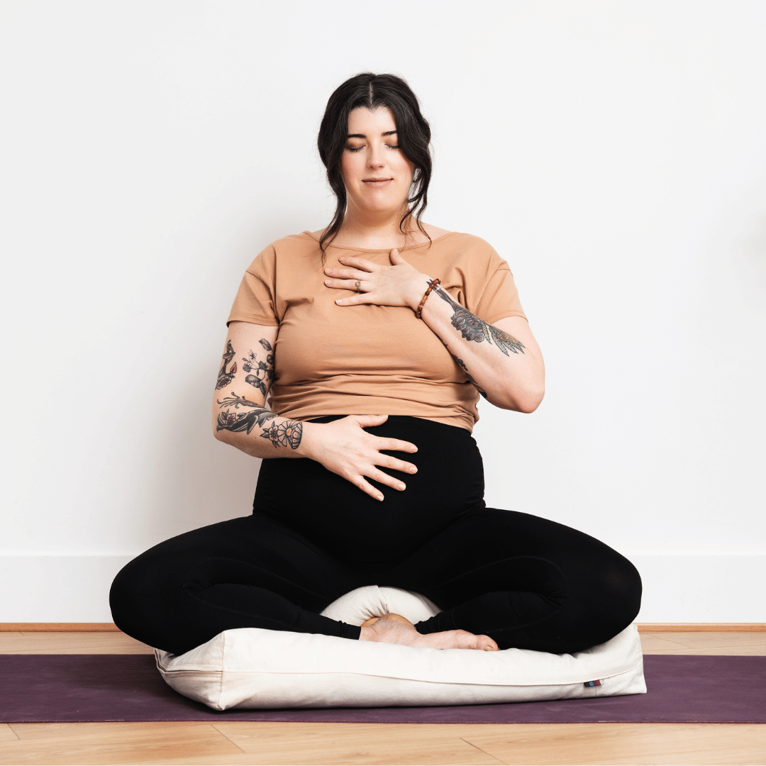 Enhance: Raise the height of your hips by sitting on a block, blanket or cushion. This will help your knees fall away and relieve tension in your lower back, making it easier to maintain a straight spine. Sitting against a wall can help relieve tension & strain in the back whilst getting used to sitting cross-legged.