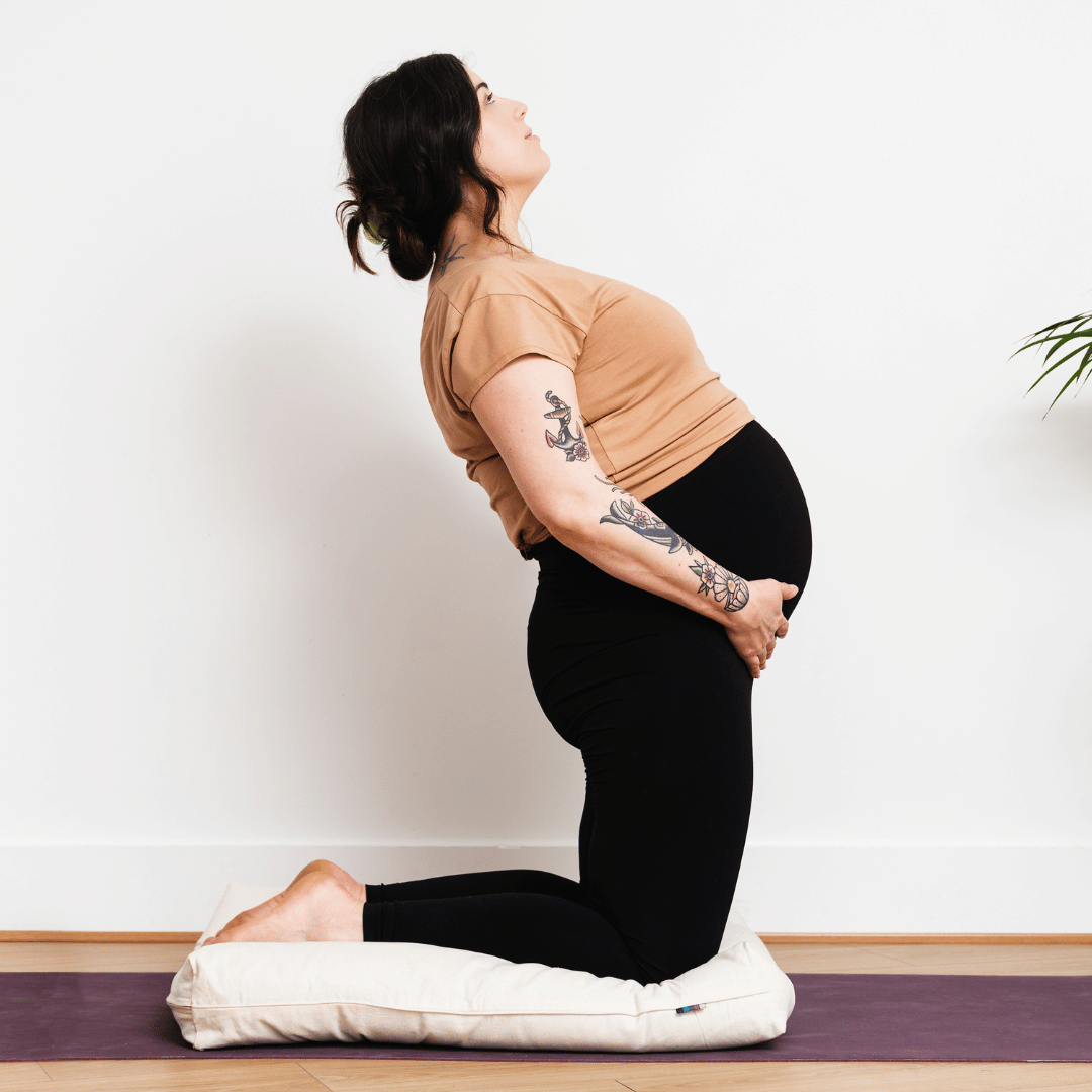 As you inhale, begin to press your hips forward, curling the top of your spine back. Think about lifting from the top of your chest amd avoid hyper-extending into your lower back. On an inhalation, stack your shoulders back over your hips, then release back to a kneeling position.