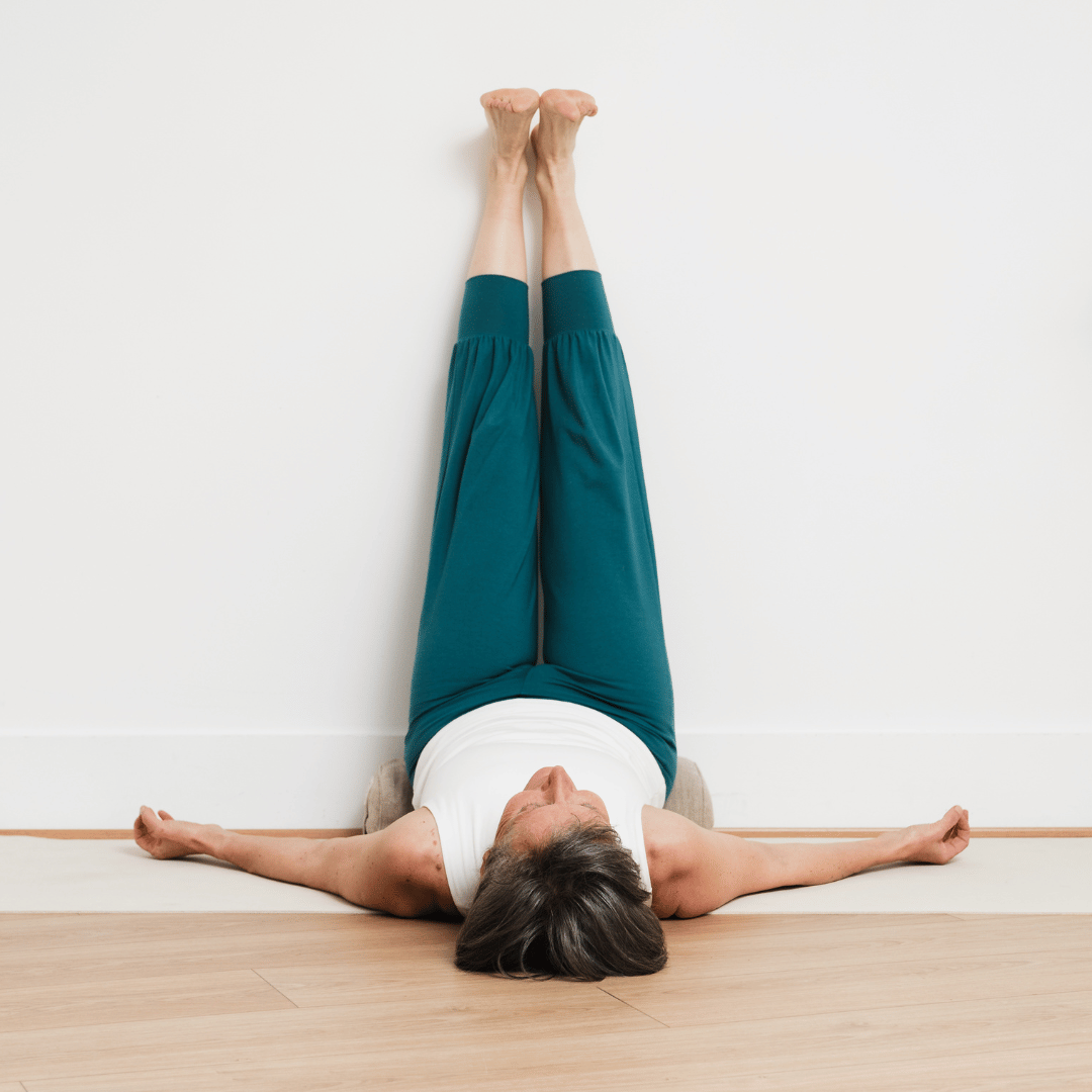 Viparita Karani, especially at the end of a busy day, is a great way to calm the nervous system and to encourage deep slow breathing.