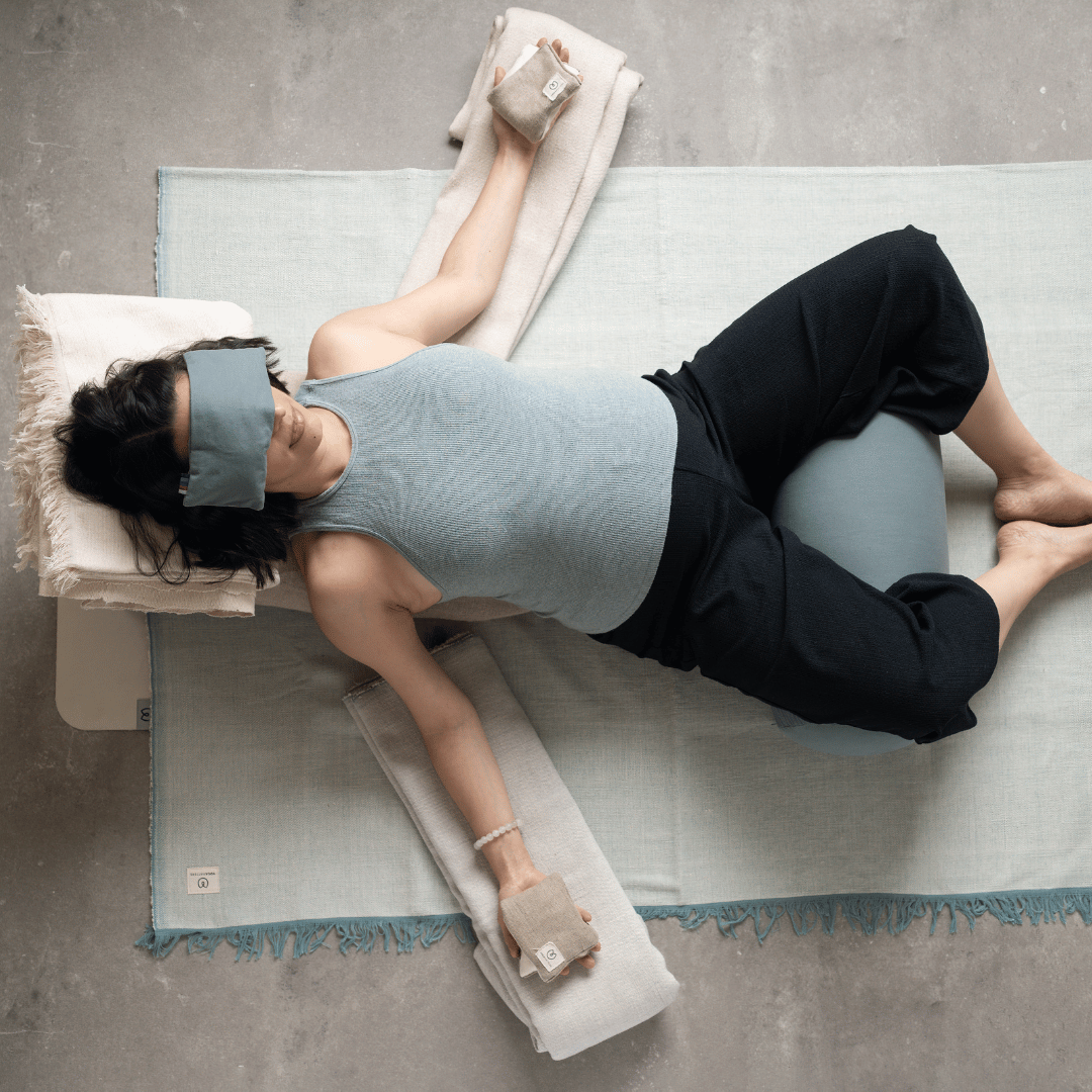 Props: 4-5 blankets, 3 eye bags, 2 foam blocks, 2 bolsters, 1 brick.