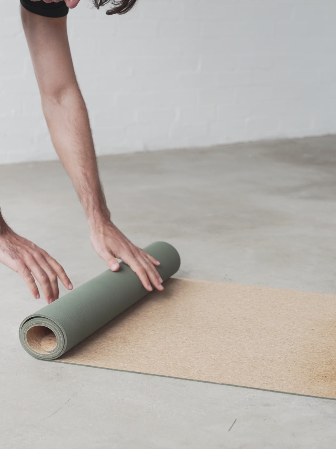 The earth-friendly Eco Cork Yoga Mat is made from cork of Oak trees and natural rubber from sustainable rubber farms. At 4mm thick, the Eco Cork mat offers a smooth practice surface with excellent cushioning and comfort.