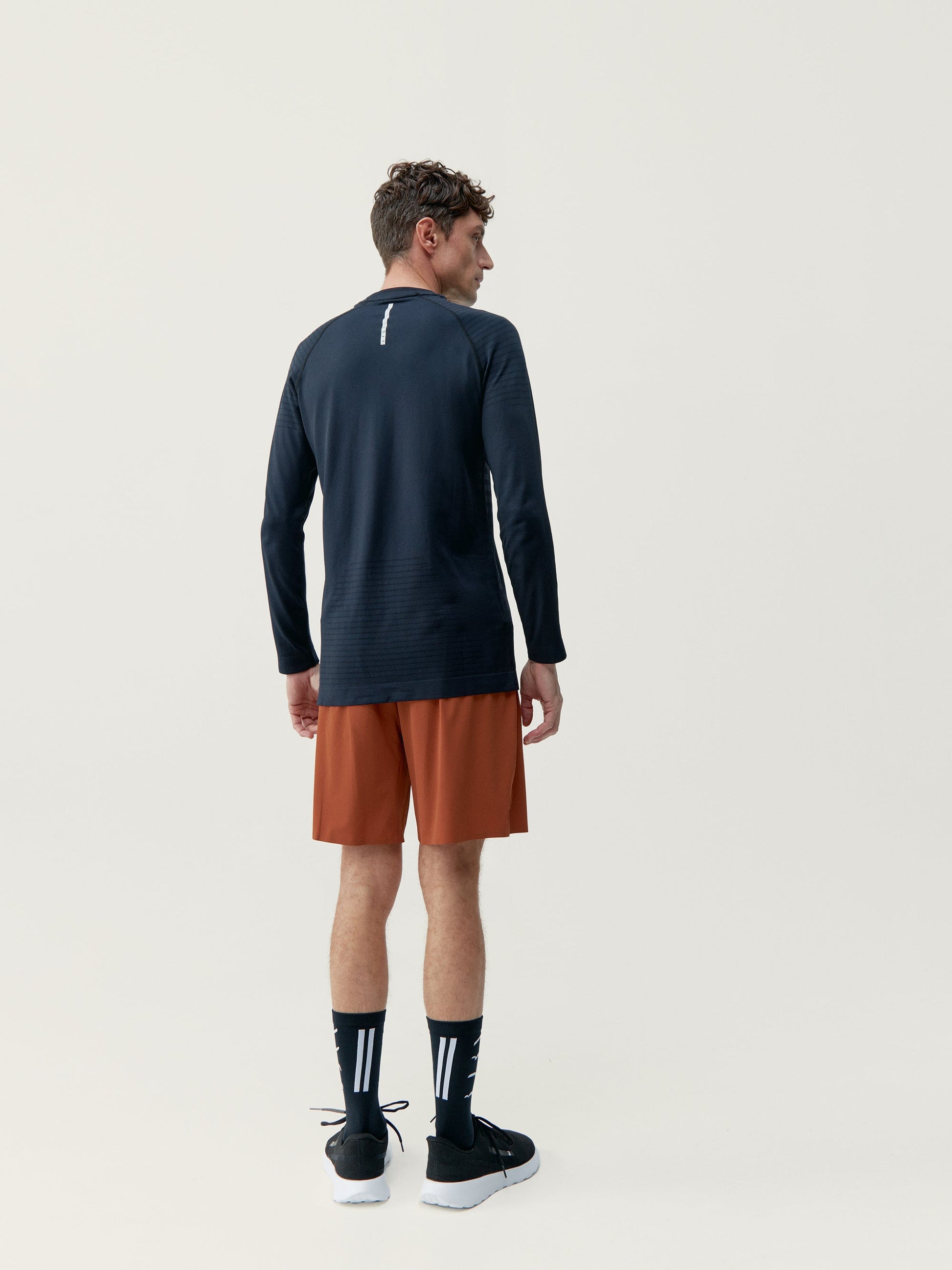 The Born Aral long-sleeved technical t-shirt is lightweight, made from comfortable 3D "Air_feel" technology fabric, with contrast textures allowing for greater breathability on the arms and back. It has a reflective band on the back for visibility.