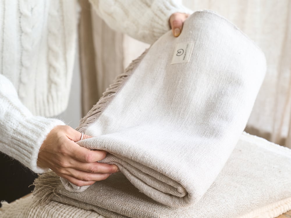 Find support and warmth with our chic organic cotton blanket. With its simple and sophisticated two-tone colour design, our organic blanket will double as an essential yoga prop as well as fit seamlessly with your home décor, ready for everyday use.