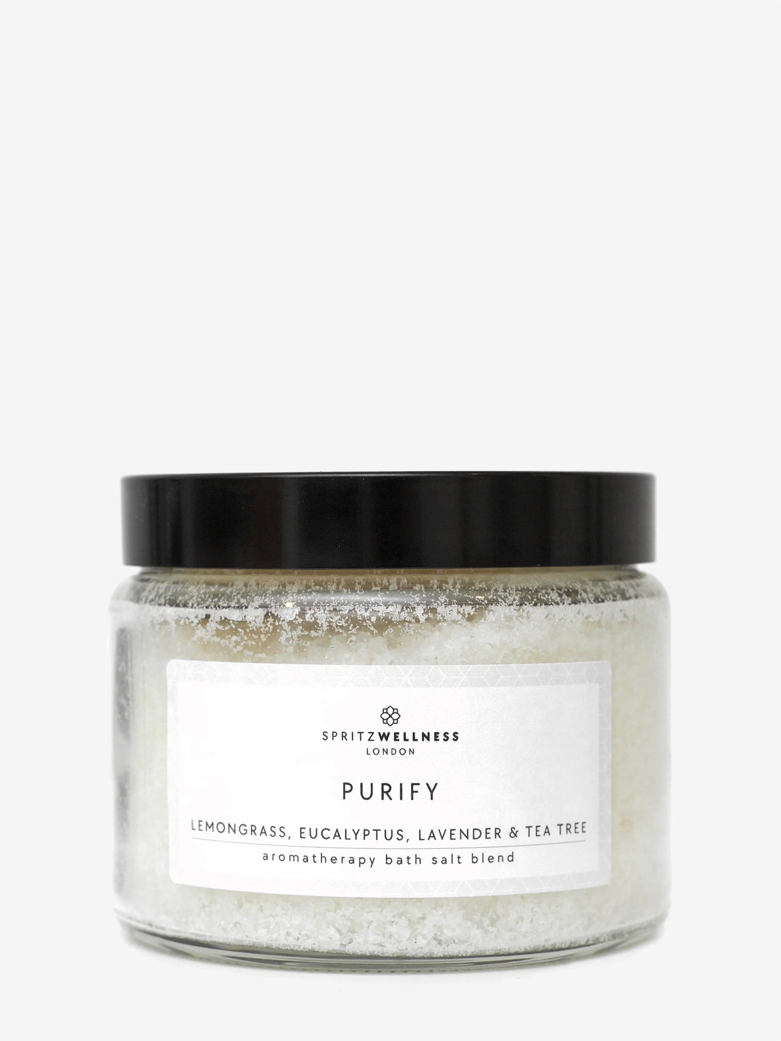 Enjoy the fresh scents of the Purify Bath Salts - lemongrass, eucalyptus, lavender and tea tree to calm the mind and body after a long day.