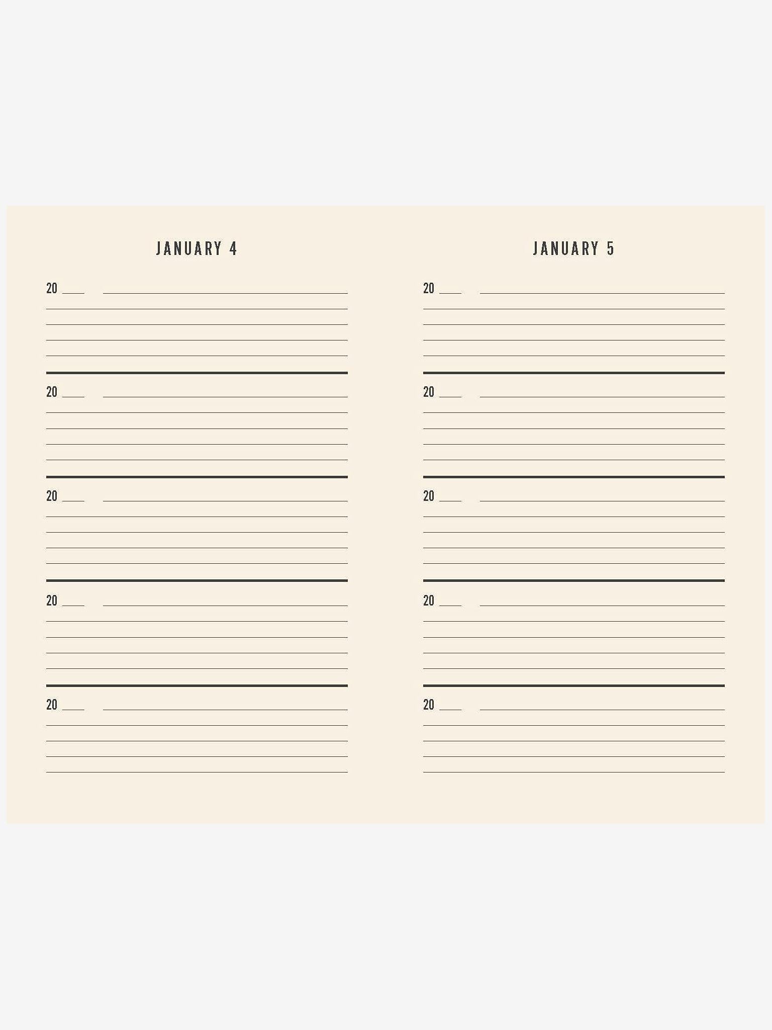 More than a daily diary journal: For those daunted by the idea of keeping a diary, this is a simple five minute journal commitment of just one line a day. Each page of the journal includes an entry for five successive years, allowing users to revisit previous thoughts on a specific day of the year over the span of five years.