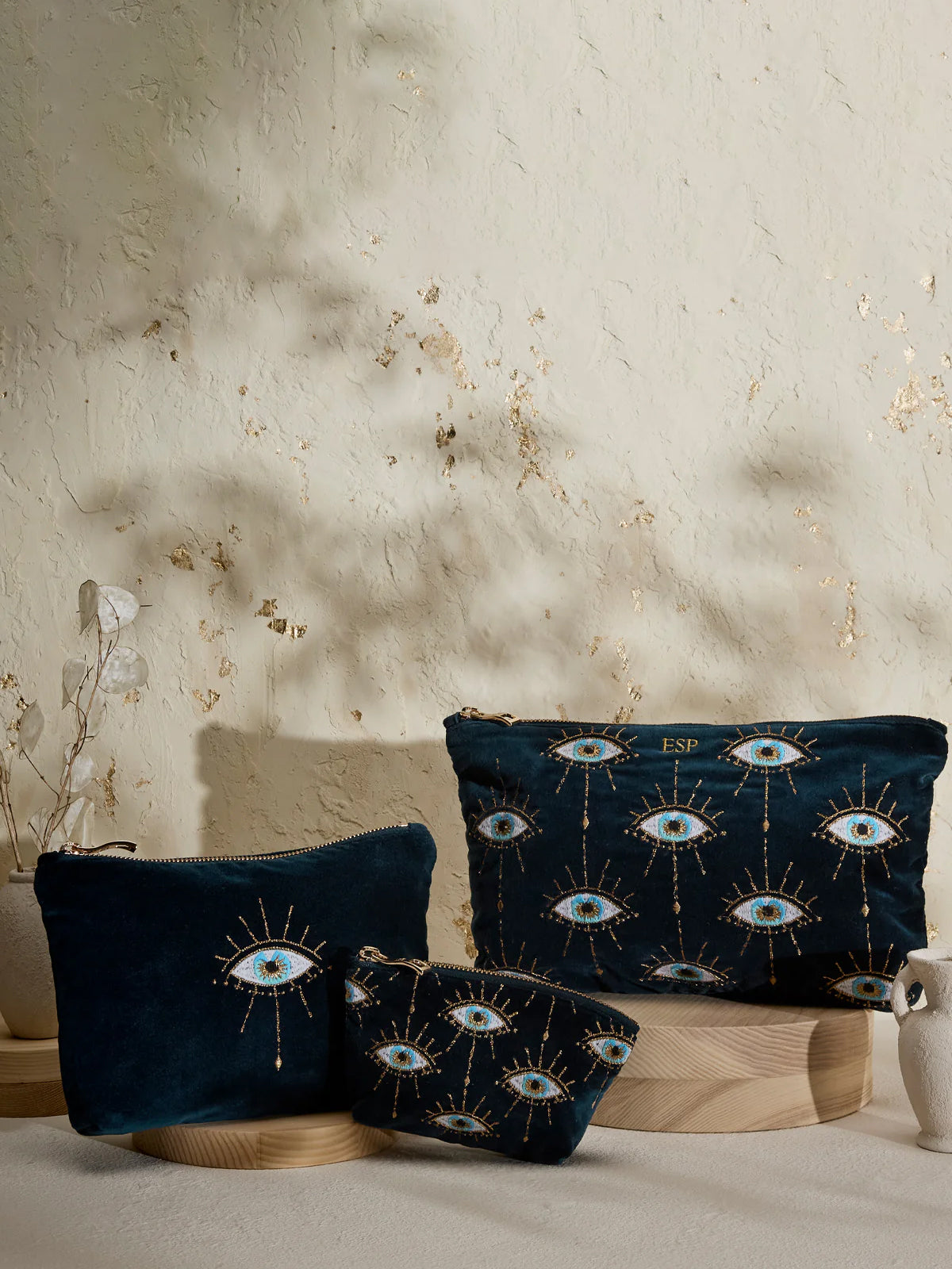 Elizabeth Scarlett Velvet Mini Pouch - Ink Blue Mystical Eye