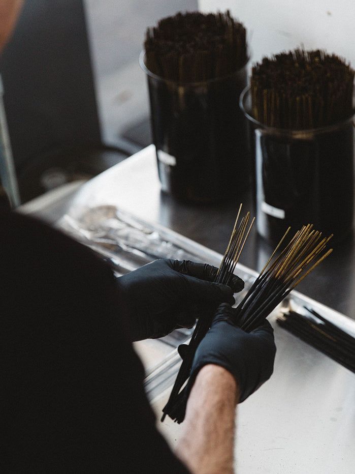 P.F. Candle Co. incense sticks are hand-dipped and packed in their Los Angeles studio.
