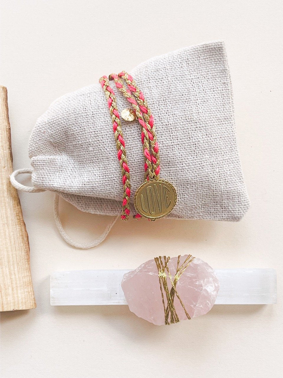 + 1 Rose Quartz Energy Bracelet (in a linen drawstring bag)