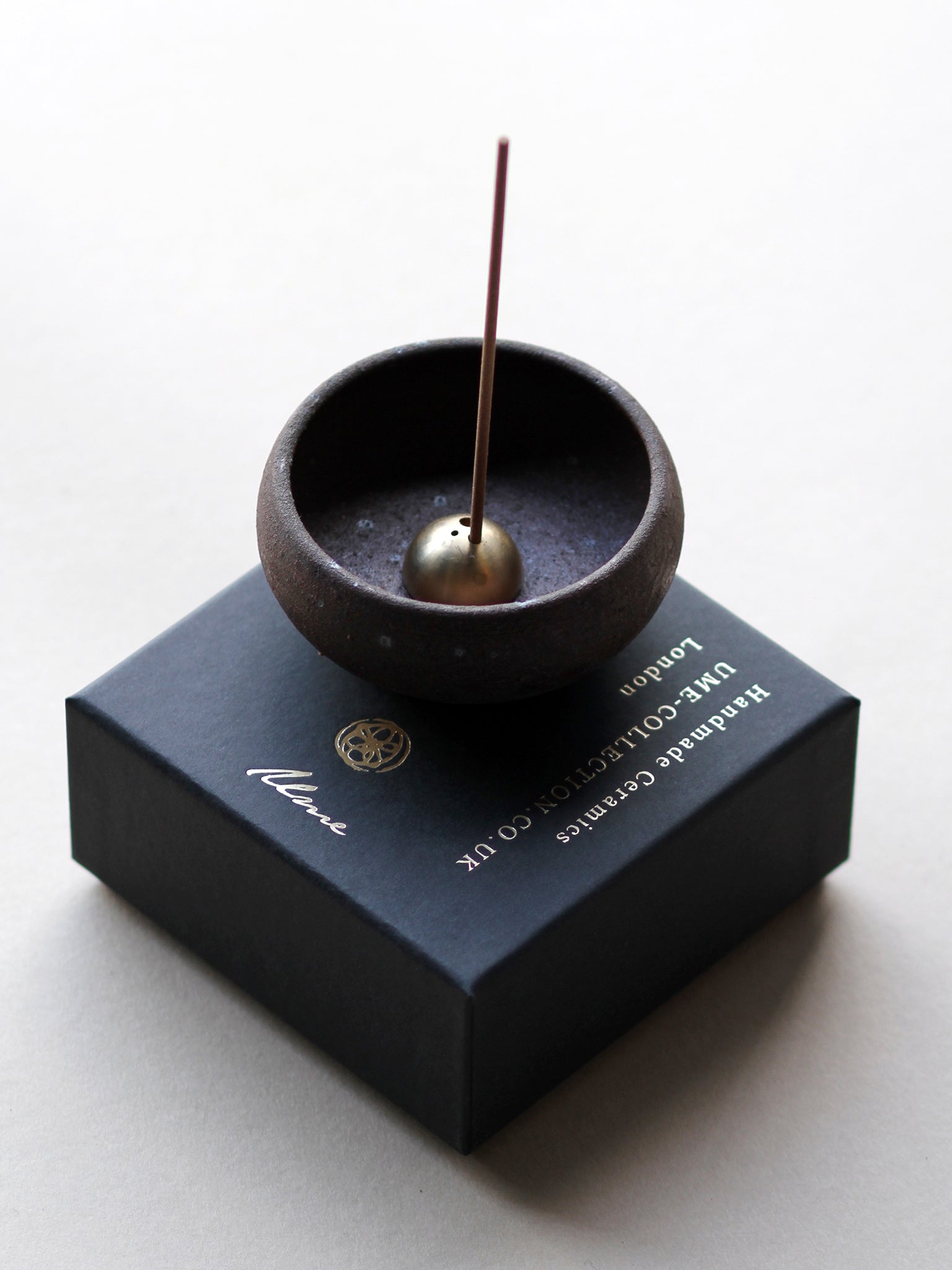 Ume Collection's elegant incense burner is handmade in Japanese-style stoneware mud clay. This collectable piece has been made by their artisan potters. It has a gorgeous wabi sabi style & artistic texture. A beautiful bowl to catch the ash of your favourite natural incense.