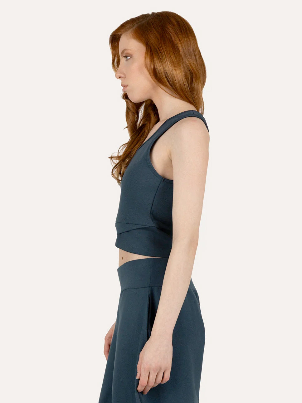 The Sati cropped tank brings fresh energy to your practice and your wardrobe. Designed with a flattering cropped length and unique envelope detail at the hem, this yoga top combines playful style with serious comfort - and the performance to back it up.