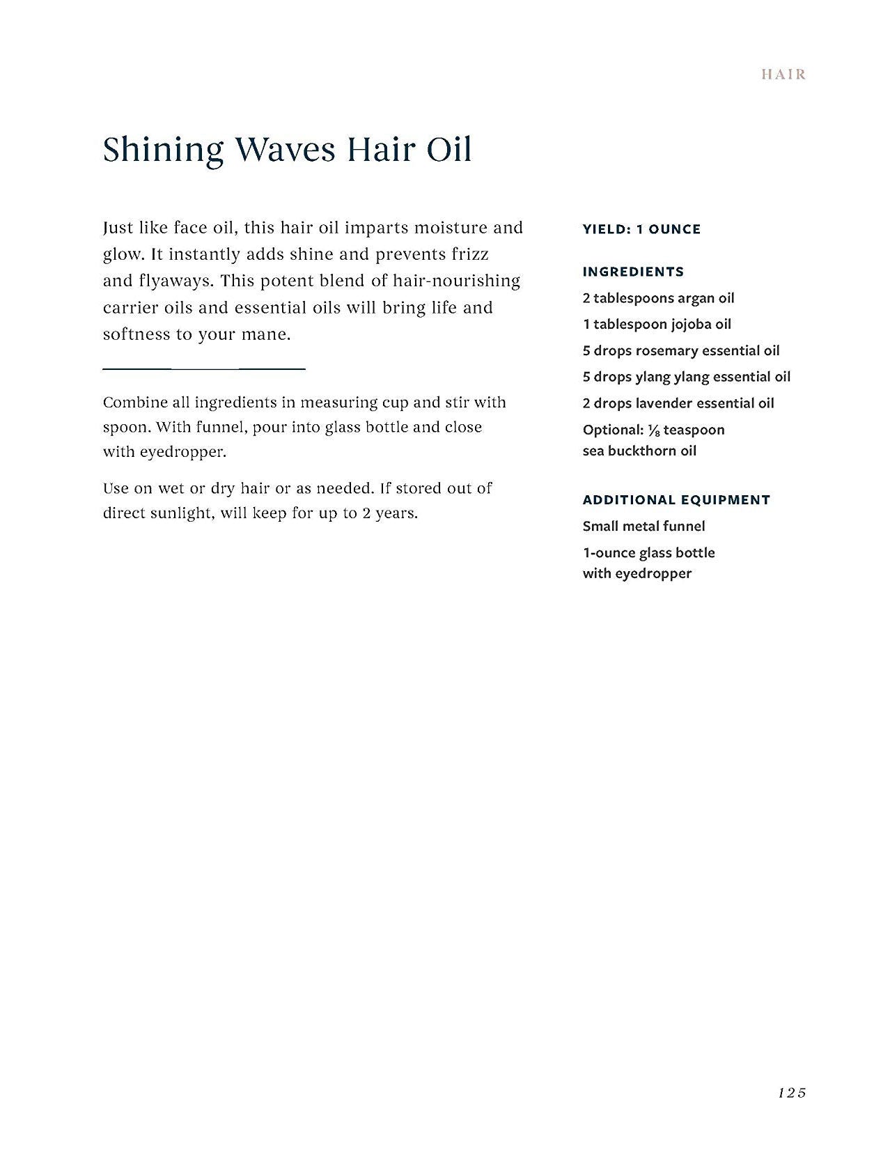 Just like chemical additives in our food, synthetic ingredients in our hair and skin care can wreak havoc with our bodies. Luckily, there's no need to compromise luxurious, effective skin and hair care for safety. From a leader in the world of natural beauty, Wild Beauty is an inspiring and highly usable guide to harnessing the miraculous power of plants to make your own face oils, body balms, hairspray, bath salts, and more.